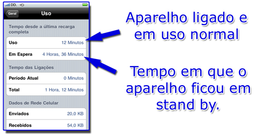 Bem, depois de fuçar um pouco mais notei algo intrigante na parte de "uso" do iPhone, ele praticamente não diferenciava o que era uso ou o que era Stand By.
